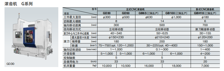 • · G系列提供多種滾齒機(jī),適用于汽車、飛機(jī)、船舶、渦輪發(fā)電機(jī)等多種產(chǎn)品。