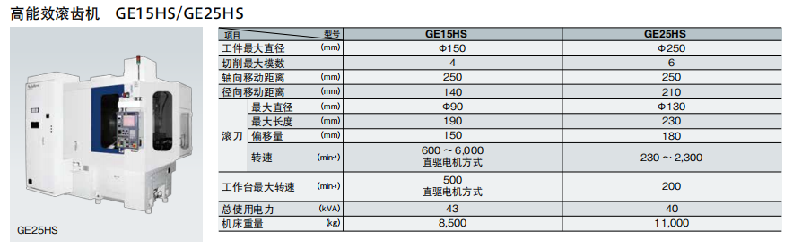 • · GE25HS:高速、大功率主軸,為汽車差速器等大直徑齒輪提供高效加工