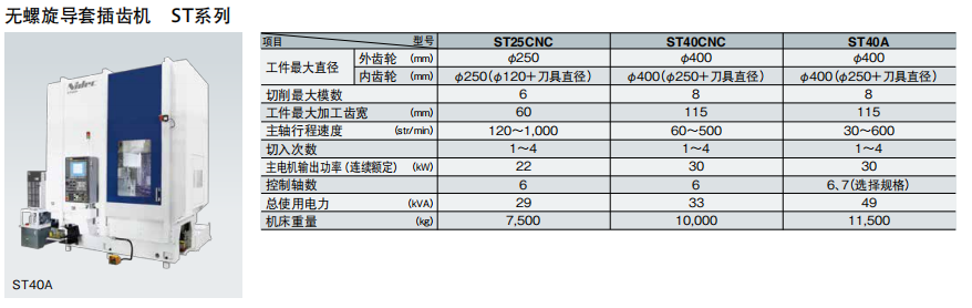 • · ST系列可以加工任何斜齒輪,無需使用程序輸入更換導軌。