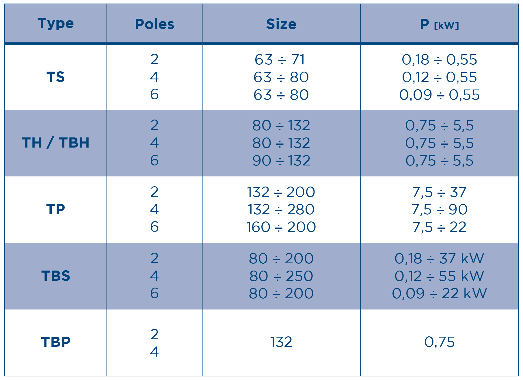 標稱功率及尺寸根據IEC 72-1 標準,從0.09到90KW