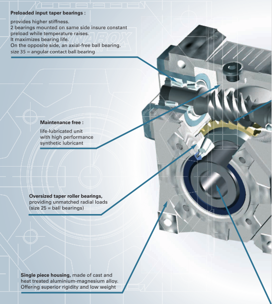 蝸輪:非常安靜,很大的過載能力,更高的扭轉(zhuǎn)剛度。