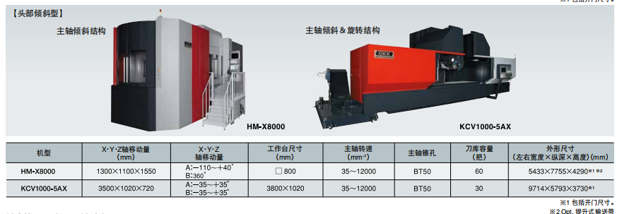 • · HM-X8000,該型號尤其適合復雜形狀的汽車和飛機零部件的高效加工,該產品主軸頭采用傾斜結構,無需傾斜重物即可進行加工,精度高。