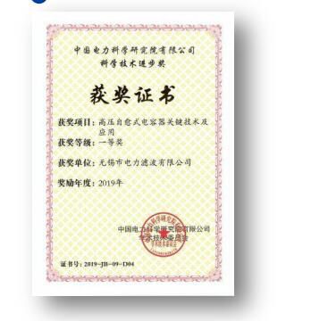 中國電工技術學會電力電容器委員單位  -   產品榮獲中國電科院2019年度科技進步一等獎